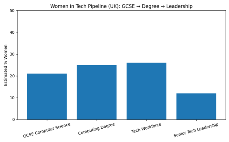The gender gap in senior technical leadership begins long before the workplace. From GCSE subject selection through to degree pathways and into industry, the pipeline narrows progressively, resulting in a significantly smaller pool of women reaching senior engineering and architecture roles.